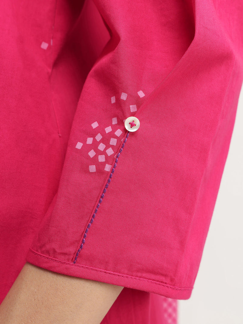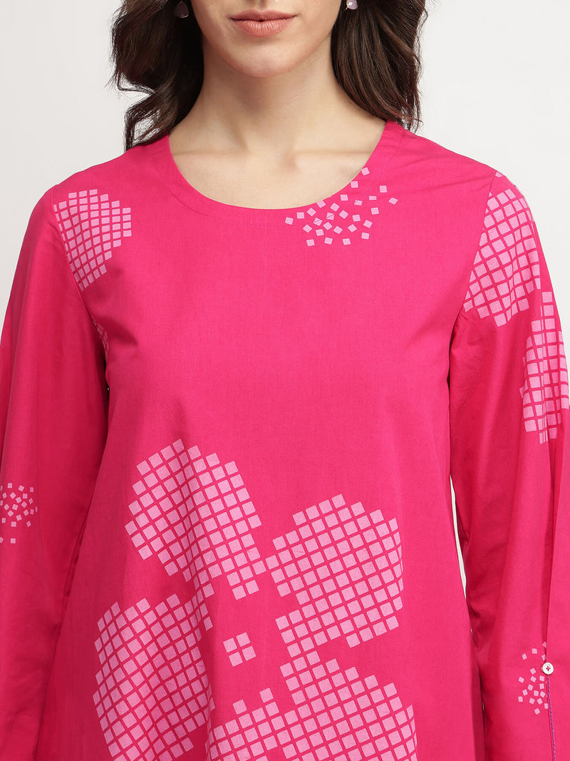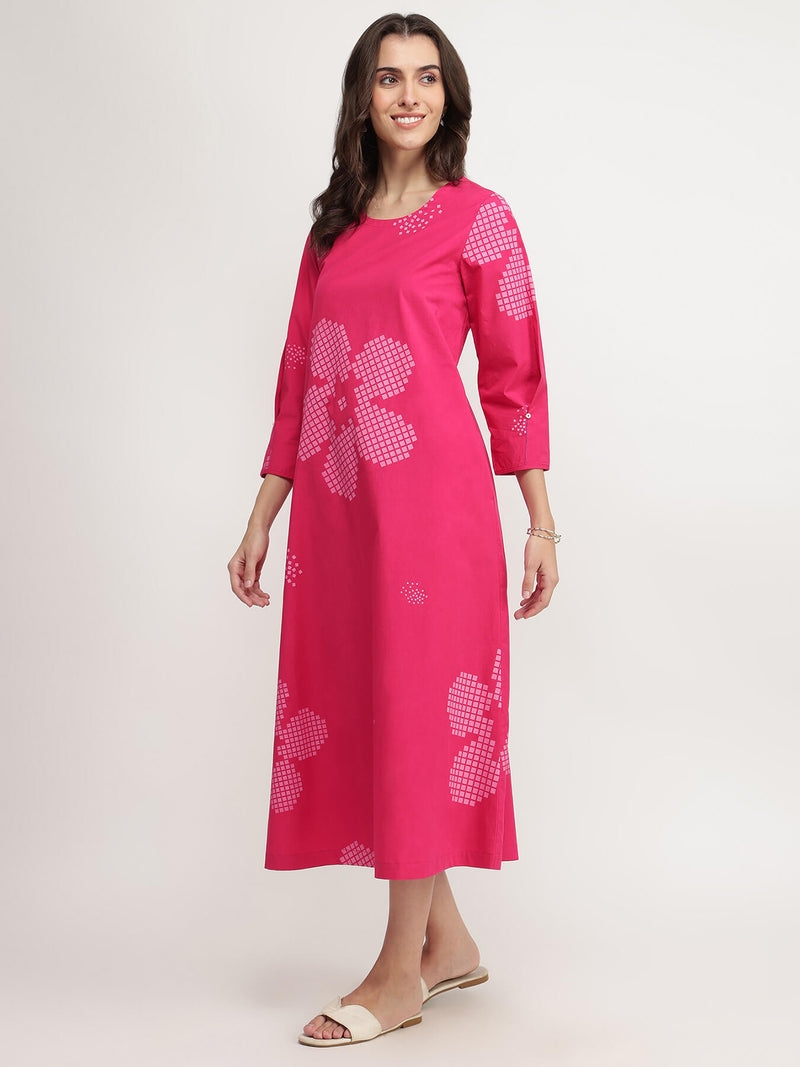 This beautiful pink dress features an A-line cut in soft cotton and a playful geometric floral print. Style with flats and a structured tote for a practical outfit you can wear across the week.