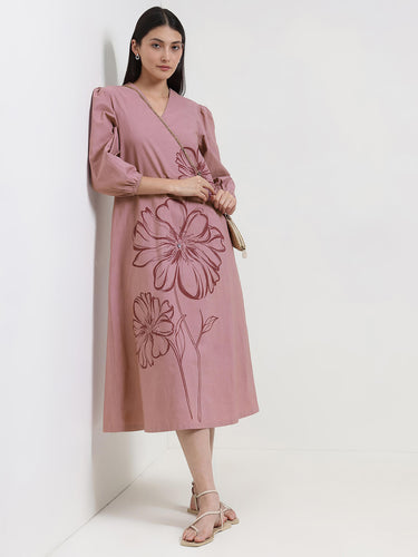 Cotton Floral Placement Print Dress - Pink