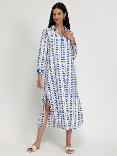 This Cotton Floral Shirt Dress is a summer wardrobe staple on days you long for a relaxed, stylish look. Wear it with silver jewellery and a statement bag for a dainty look.