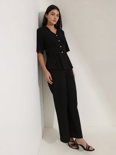 Stop guessing what to wear! This easy co-ord set gives you a perfect, defined waist instantly. With comfy tonal trousers, all you need is a great pair of heels for an effortlessly polished outfit.