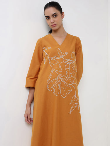 Cotton Bandhani Floral A-Line Kurta Set - Mustard