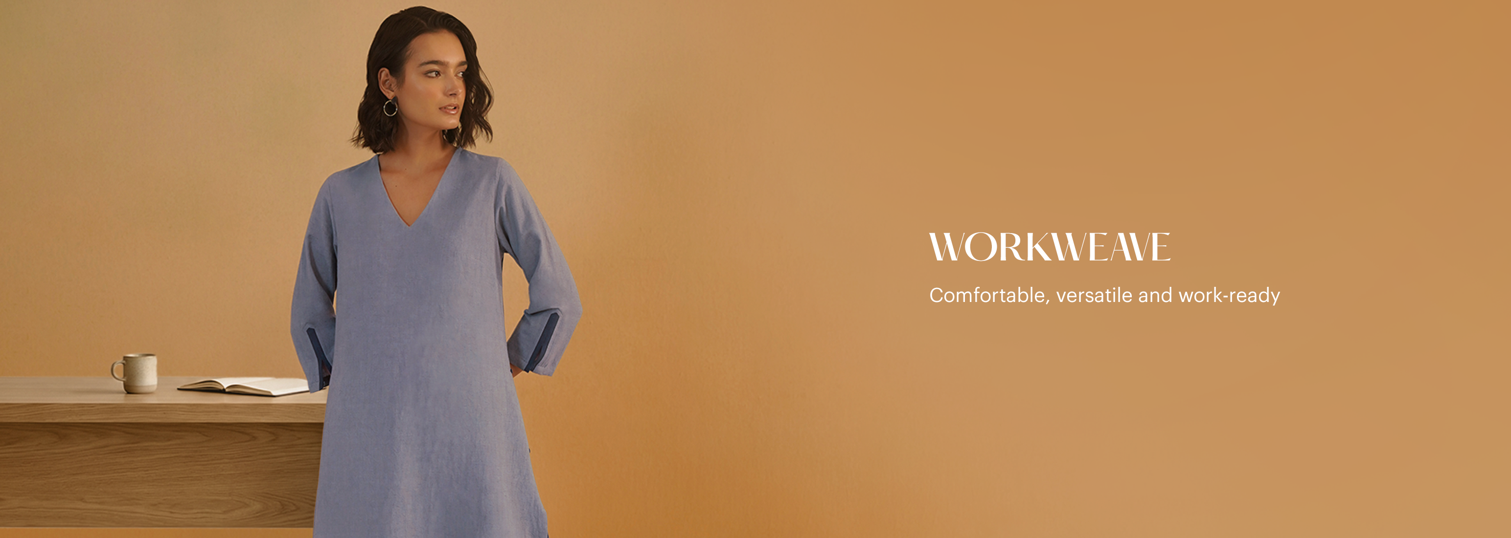 Linen Blend Colourblock A-Line Kurta Set - Off White & Black