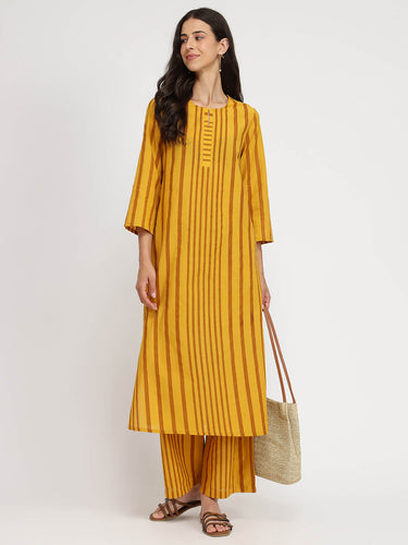 Cotton Striped Straight Kurta Set - Yellow