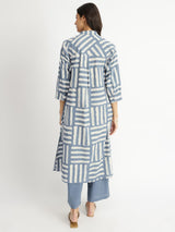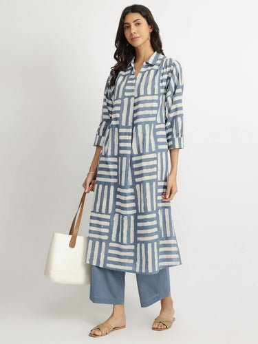 The Cotton Dabu Stripe Play Kurta Set in grey is made for those who love simplicity with style. Pair with white or beige pants, block heels and minimal accessories for an easygoing look.