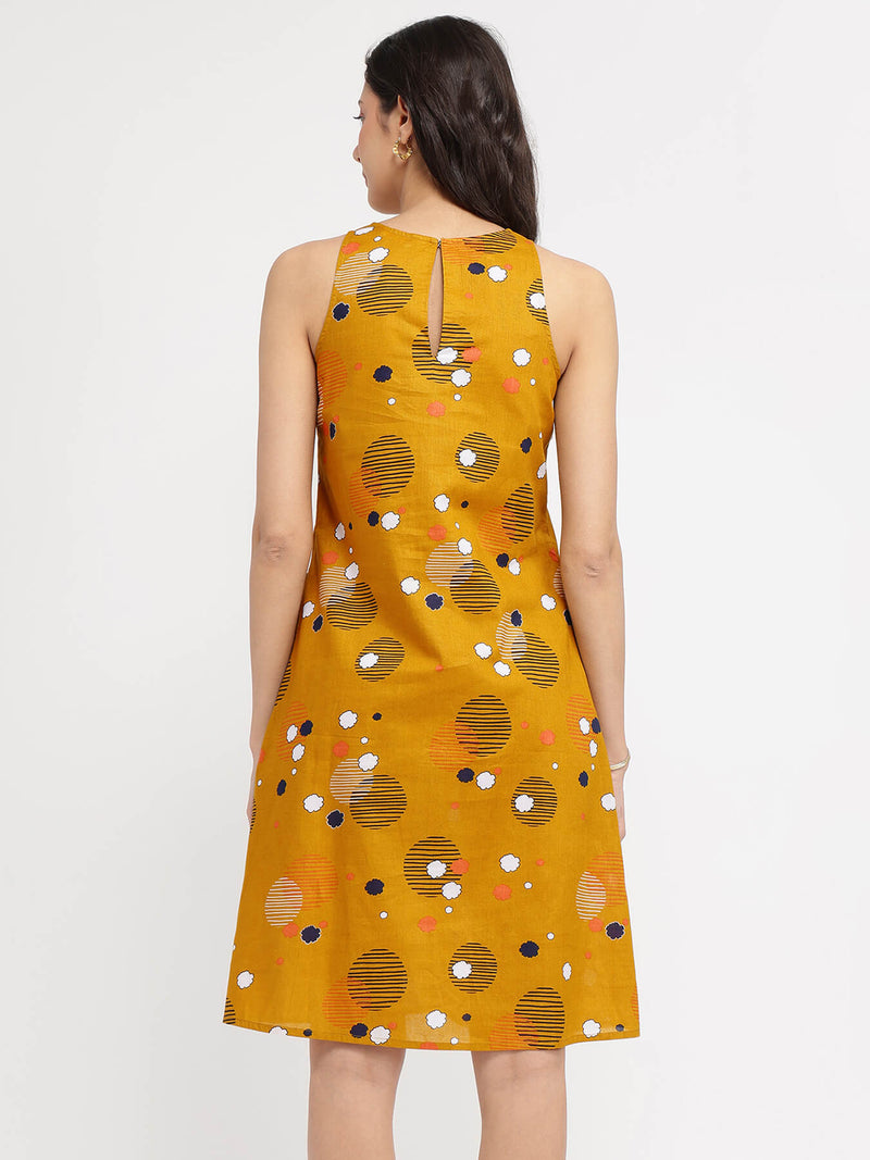 This yellow A-line dress blends playful prints with flattering ease, perfect for sunny days. Cinch it with a black belt and add flats, hoops, and a sling for a standout daytime-to-evening look.