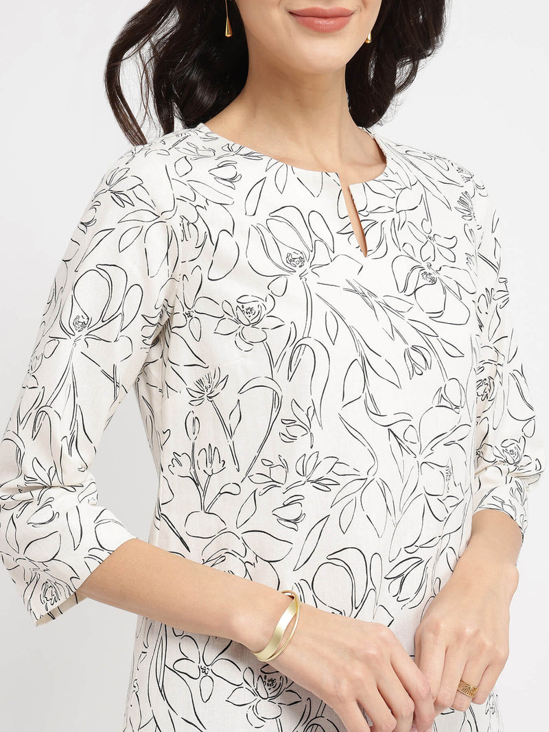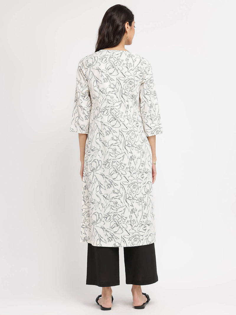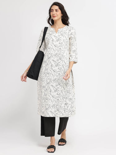 Abstract white florals in soft rayon make this kurta set a warm-weather staple, any day. Pair with sandals and a low bun for daytime elegance, or go bold with lipstick and shoulder-grazing earrings.